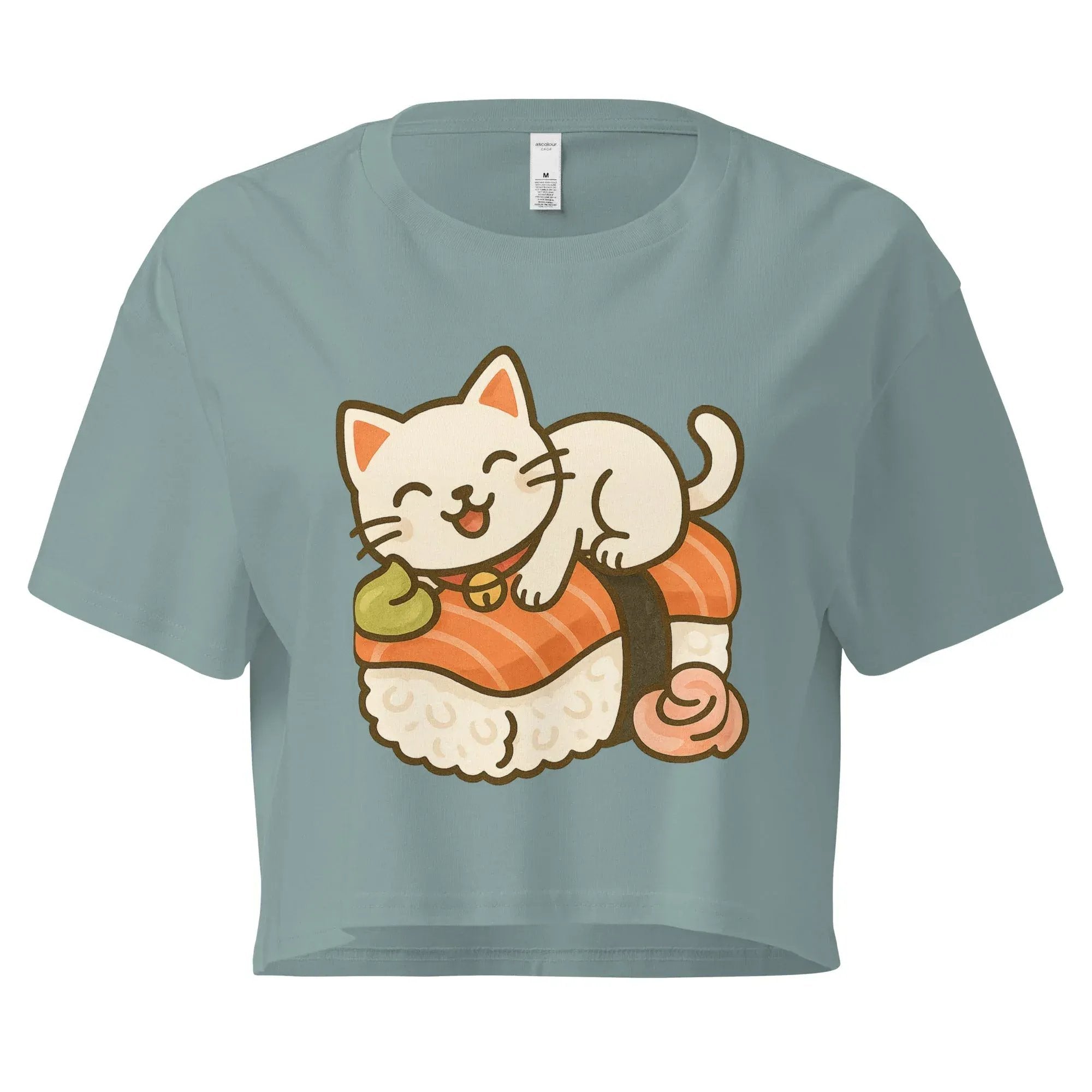 Serving up adorable vibes with a side of sushi! 🐱🍣 This Cute Cat Sushi Crop Top features a happy cartoon kitty lounging on a piece of salmon nigiri, complete with wasabi and pickled ginger accents. Designed in a kawaii style, this fun crop top is perfect for cat lovers, sushi fans, anime enthusiasts, and anyone who appreciates quirky Japanese pop culture fashion. Soft, breathable, and stylish, it’s a must-have for conventions, casual wear, or just showing off your playful side.